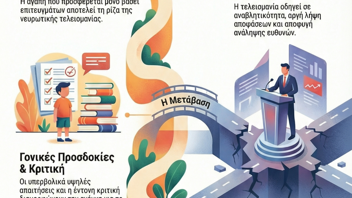January 16, 2026Το χτίσιμο των άκαμπτων πεποιθήσεων και η δυσλειτουργική τελειομανία συχνά ξεκινά από την παιδική ηλικία και επηρεάζει την ενήλικη ζωή, χωρίς οι εργαζόμενοι/νες σε θέσεις ευθύνης να συνειδητοποιούν πάντα την ύπαρξή τους. Οι ρίζες αυτών των πεποιθήσεων σχετίζονται στενά με το οικογενειακό περιβάλλον: η «αποδοχή υπό όρους» και οι υψηλές γονικές προσδοκίες θέτουν τα θεμέλια για νευρωτική τελειομανία, ενώ η συνεχής κριτική από τους γονείς οδηγεί στη δημιουργία ενός εσωτερικού συστήματος «δυσλειτουργικής αξιολόγησης», όπου το άτομο φοβάται υπερβολικά τα λάθη. Αυτές οι άκαμπτες πεποιθήσεις συχνά παραμένουν ασυνείδητες μέχρι την ενήλικη ζωή, επηρεάζοντας την ψυχική υγεία, την επαγγελματική απόδοση και τις συμπεριφορές των ανθρώπων σε κάθε θέση εργασίας. Ακόμη και οι πιο έμπειροι επαγγελματίες μπορούν να “παγιδευτούν” σε δυσλειτουργικά μοτίβα σκέψης χωρίς να το συνειδητοποιούν. Στην πράξη, εντοπίζονται επαγγελματικές δυσλειτουργίες όπως αναβλητικότητα, αποφυγή ευθυνών και δυσκολία στη λήψη αποφάσεων.